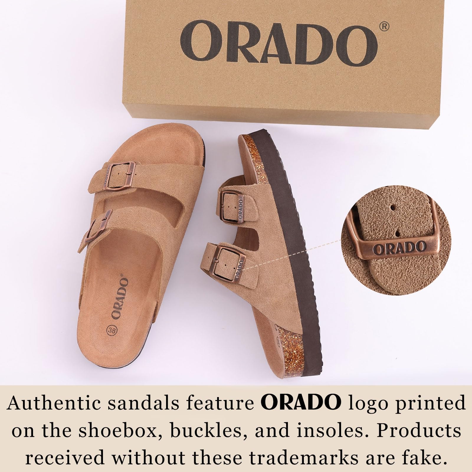 Orado Platform Apricot Suede Sandals Women Soft Cork Footbed Summer Slides