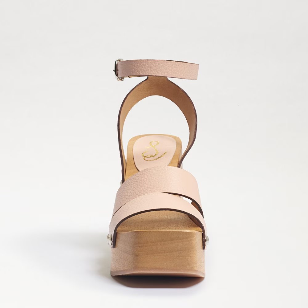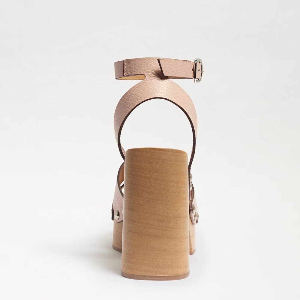 Sam Edelman Angela Summer Beige Leather Ankle Strap Open Toe Block Heeled Sandal