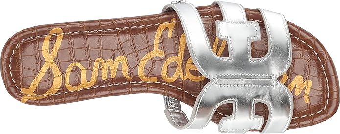 Sam Edelman Bay Soft Silver Rounded Open Toe Slip On Leather Strap Flat Sandals