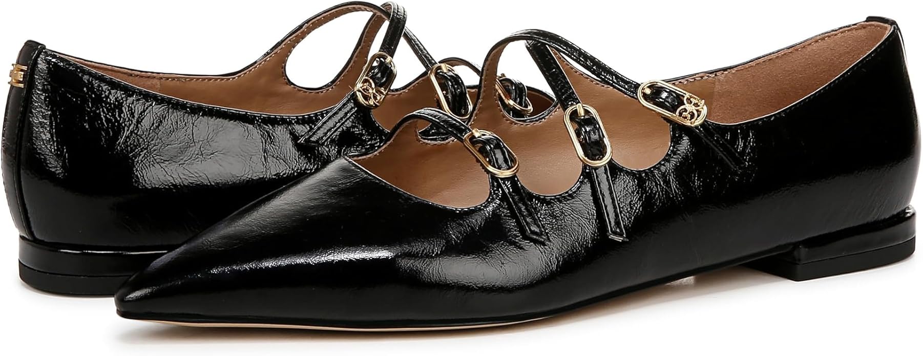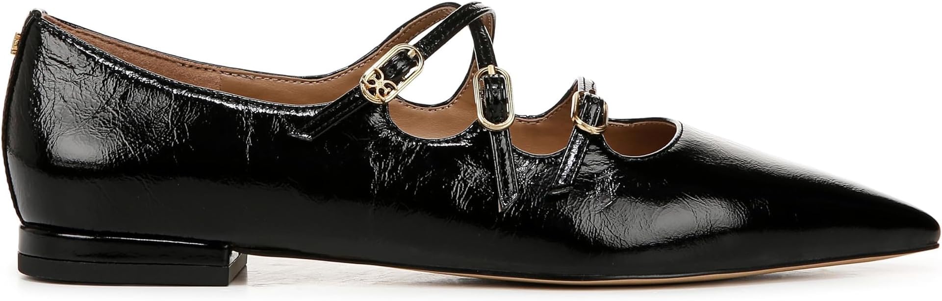 Sam Edelman Cass Black Leather Mary Jane Pointed Toe Fashion Flats Shoes