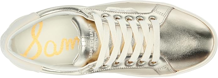 Sam Edelman Ethyl Gold Leaf Rounded Toe Lace Up Leather Fashion Low Top Sneakers