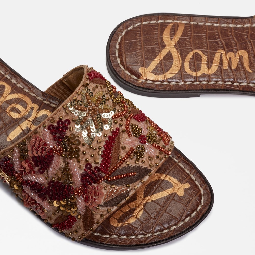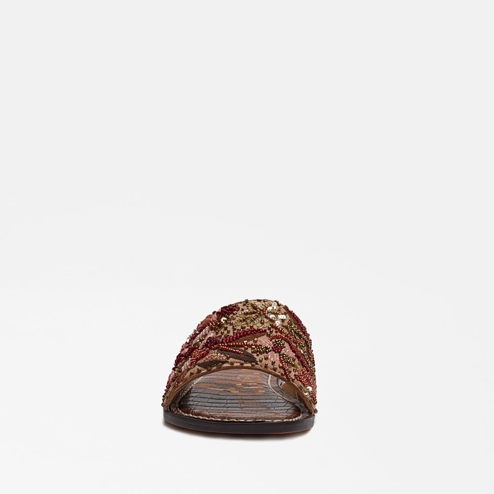 Sam Edelman Gisella Sunset Multi Open Toe Beaded Detailed Flats Slides Sandals