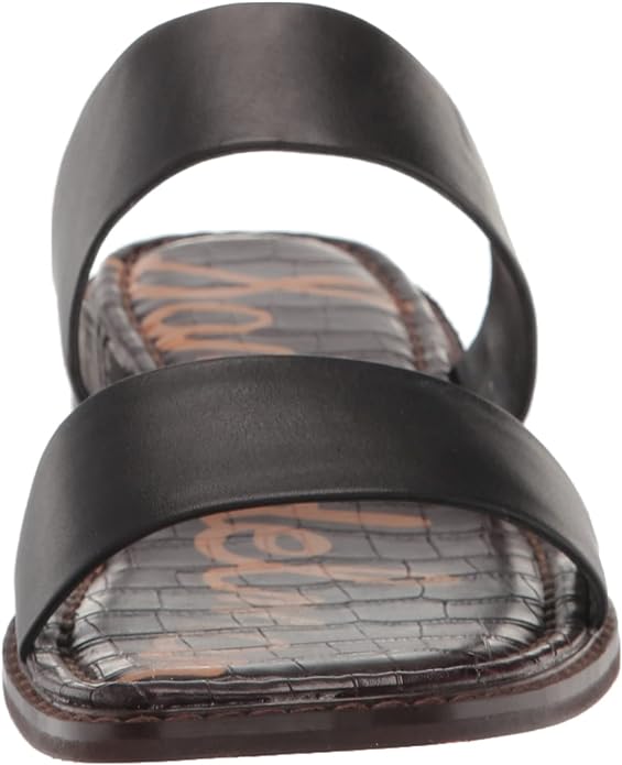Sam Edelman Haydee Black Leather Fashion Slip On Open Toe Flat Slides Sandals