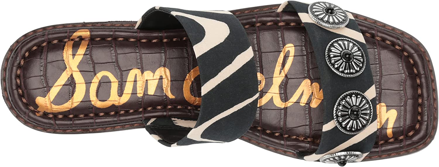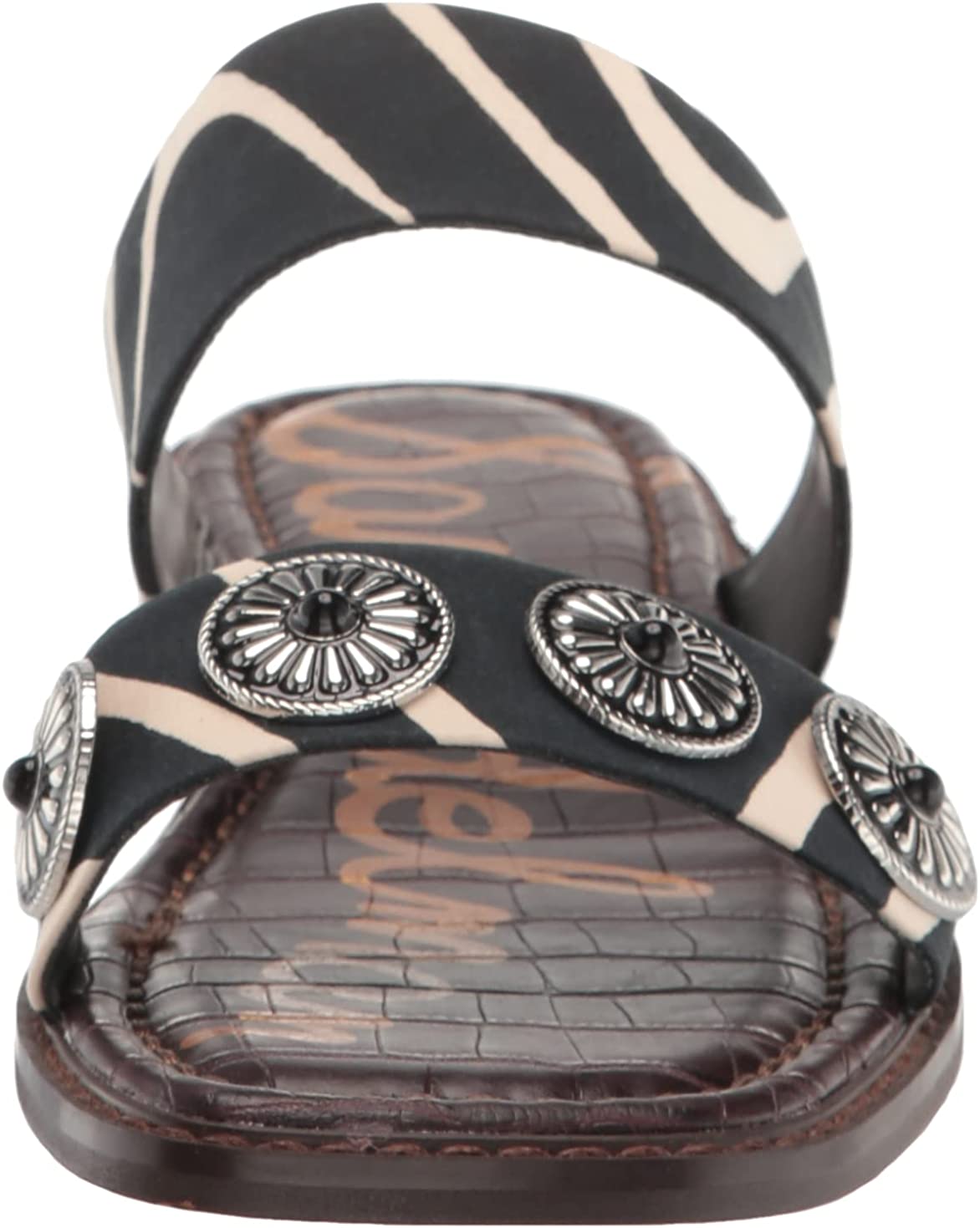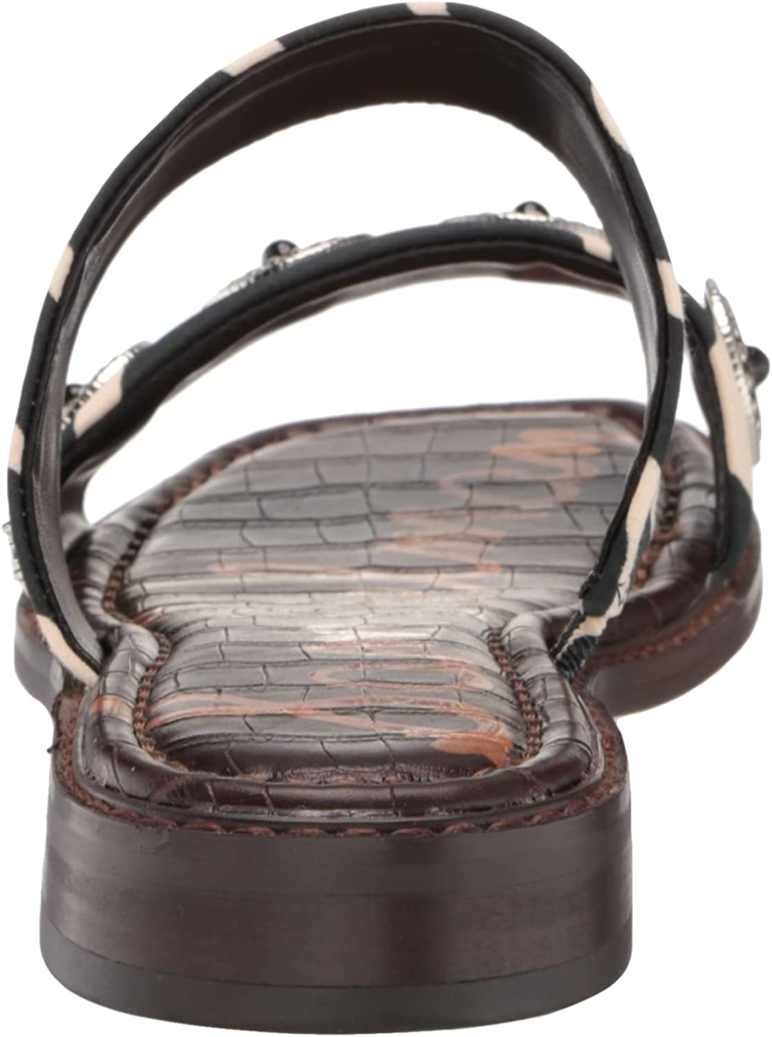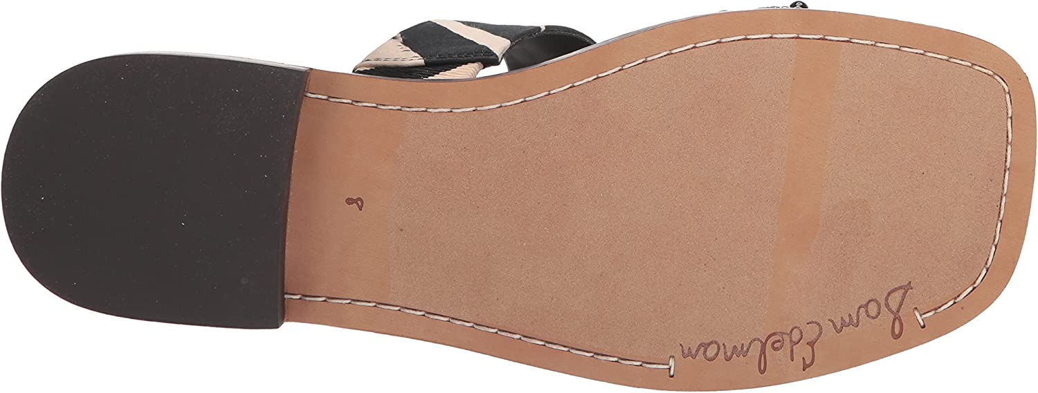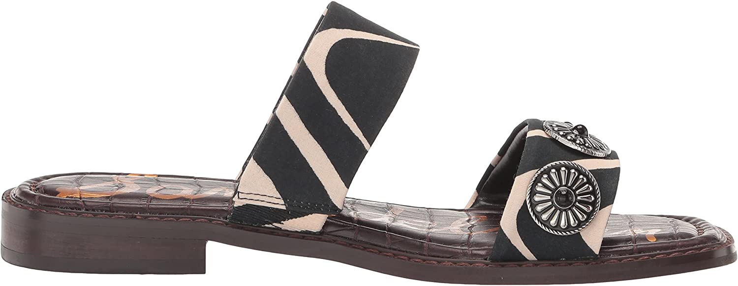 Sam Edelman Hera Black/Natural Slip On Open Toe Embellished Flat Slides Sandals