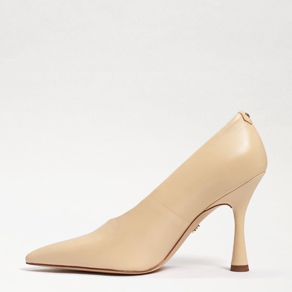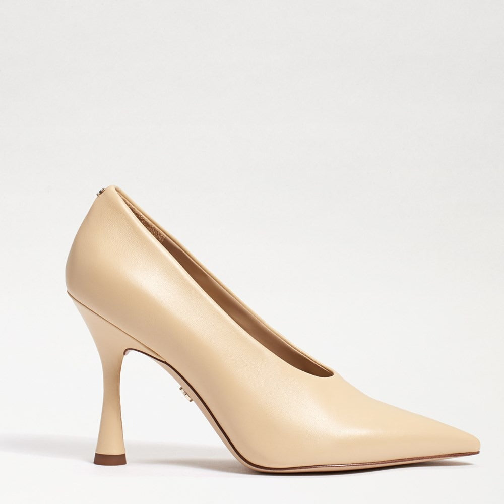 Sam Edelman Hilton Eggshell Spool Heel Pointed Toe Slip On Fashion Leather Pumps