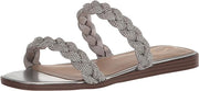 Sam Edelman Inette Soft Silver Strappy Rhinestone Detailed Slip On Flats Sandals