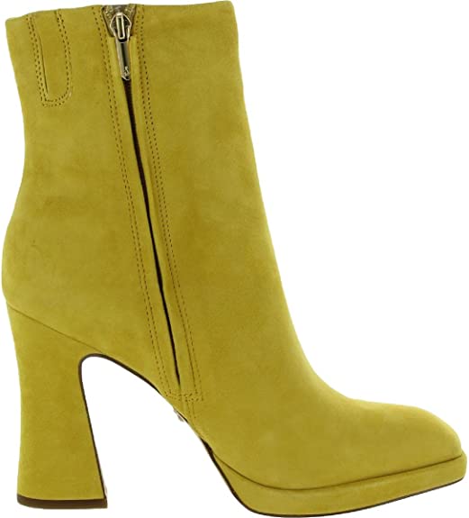 - A sloping heel with a gold-tone logo charm adds a subtle touch of signature style to these all-suede Sam Edelman booties.