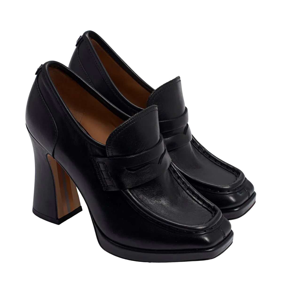Sam Edelman Jeanette Black Box Leather Squared Toe Slip On High Platform Loafers