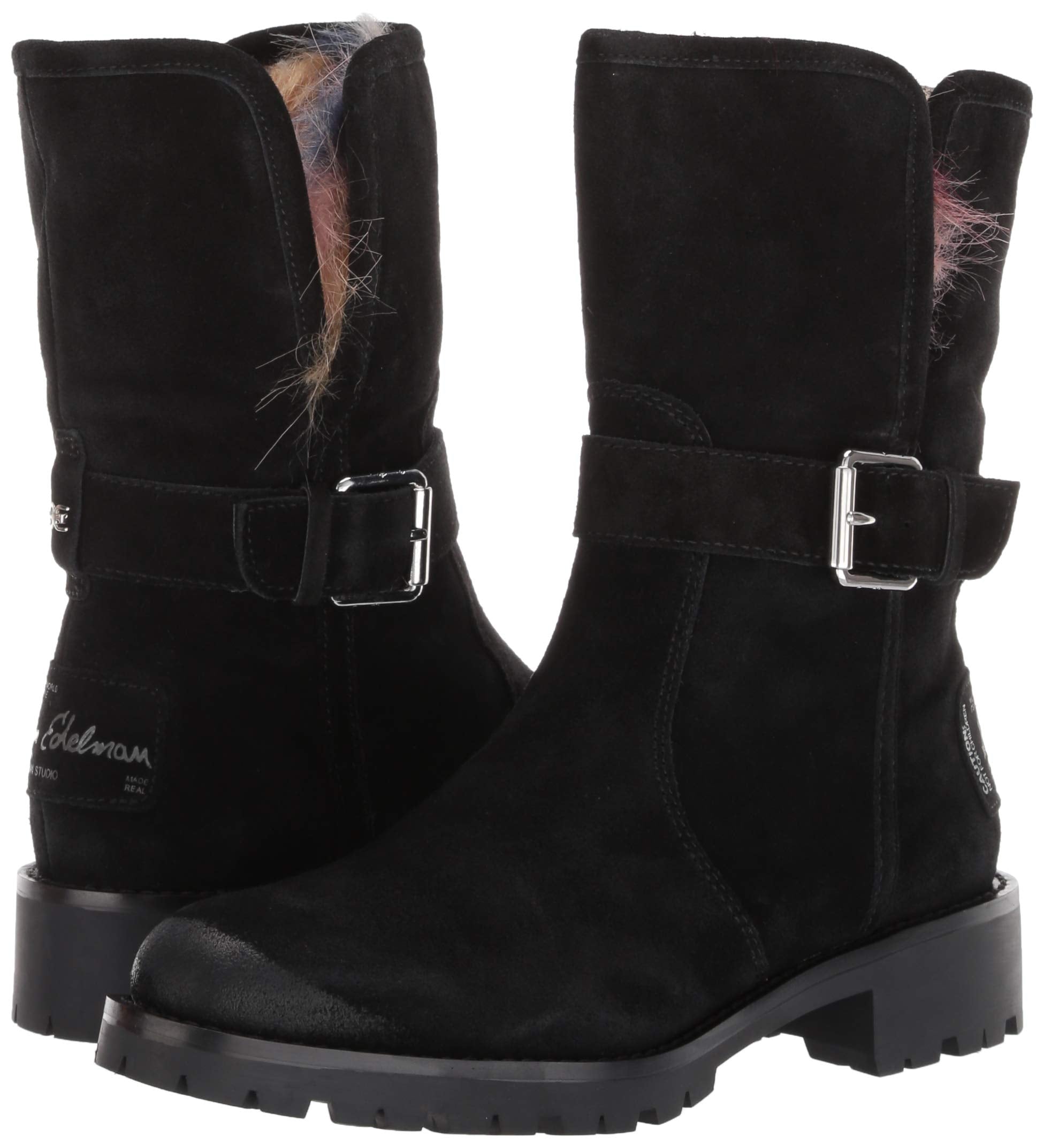 Mid-calf cold weather boot with faux fur detailing shoes epitomize chic comfort. With exceptional materials and fine styling, each pair of shoes is an affordable luxury that cleverly combines a youthful outlook with a worldly sensibility. Sophistication with down-to-earth appeal mean that these shoes are made to be lived in. Whether it's a classic revisited for a modern interpretation or a cutting edge design, we always keep an emphasis on comfort.