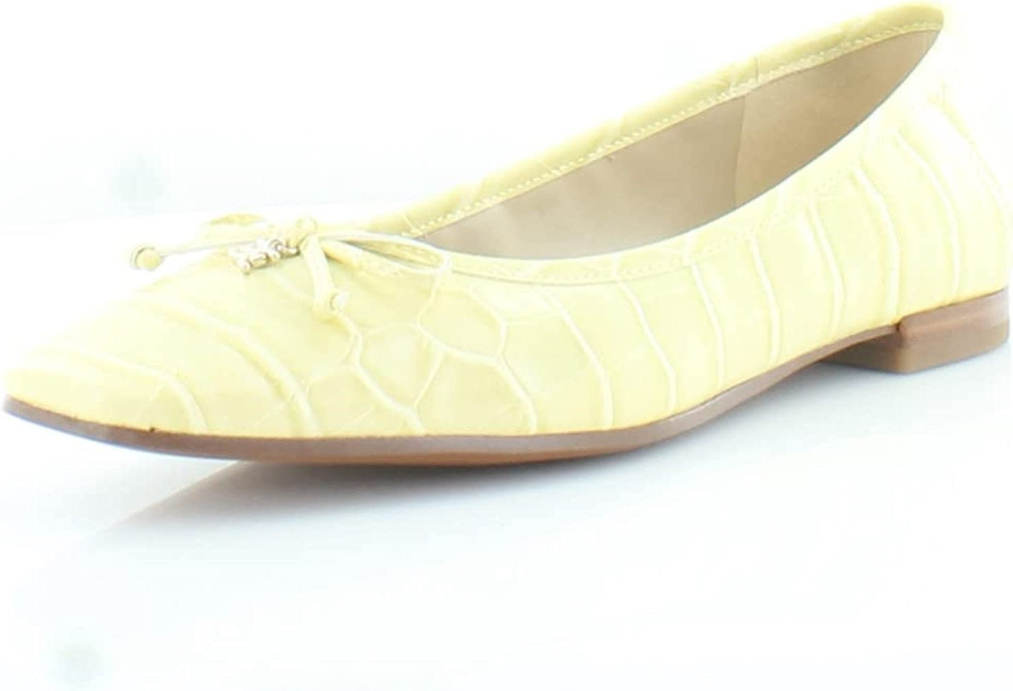 Ballet flats Snake-effect leather Bow-embellished Square toe Stacked heel Slip on Rubber sole Imported