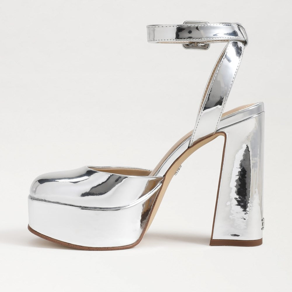 Sam Edelman Kaine Soft Silver Squared Toe Ankle Strap Block Heeled Sandals
