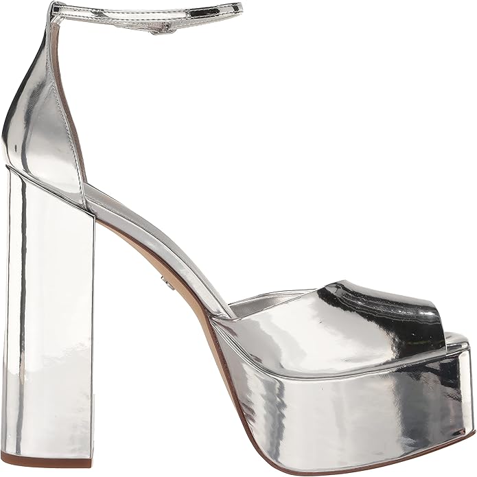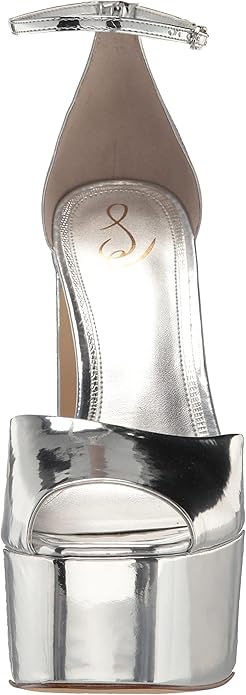 Sam Edelman Kori Soft Silver Ankle Strap Peep Toe Block Heeled Fashion Sandals