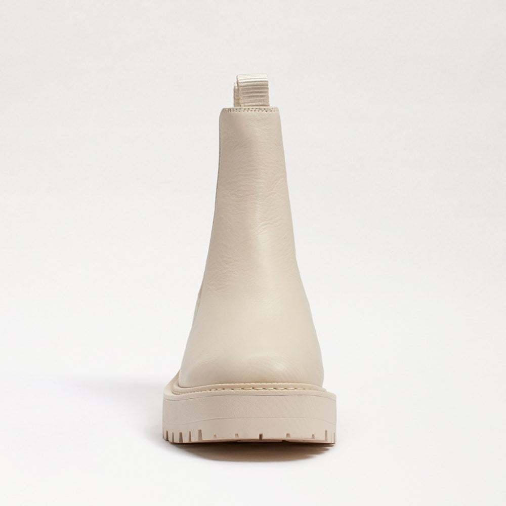 Sam Edelman Laguna Modern Ivory Leather Chelsea Rounded Toe Pull On Wide Boots