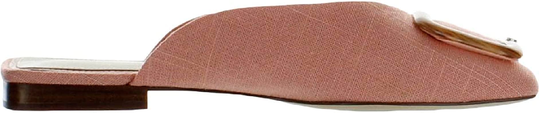 Sam Edelman Lavina Clay Linen Buckled Slip On Square Toe Flat Fashion Mules