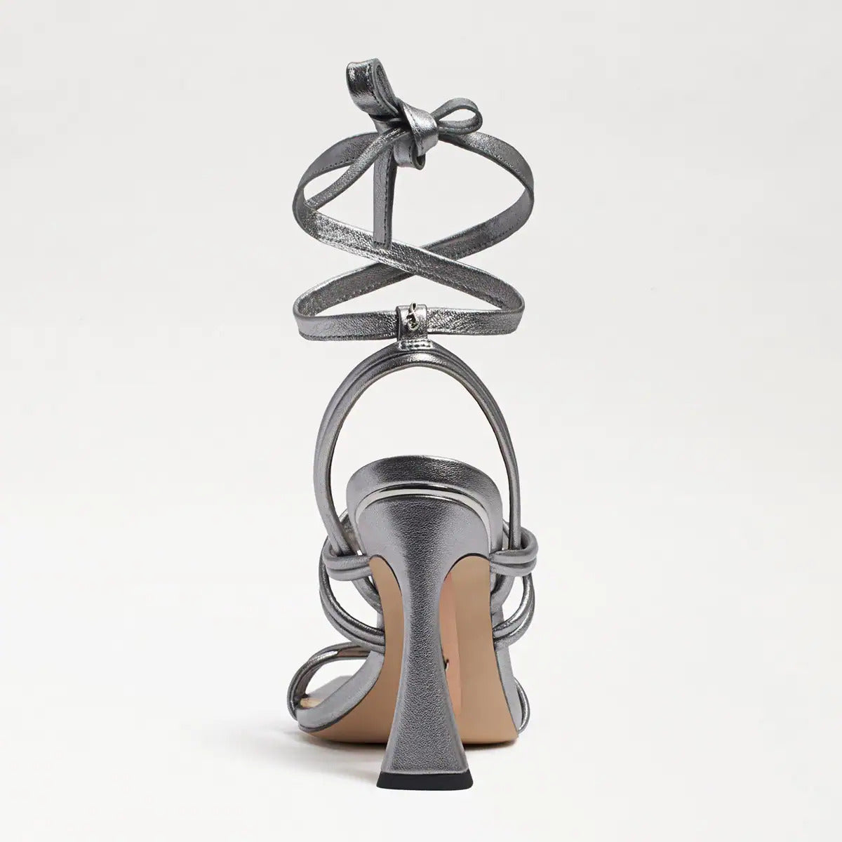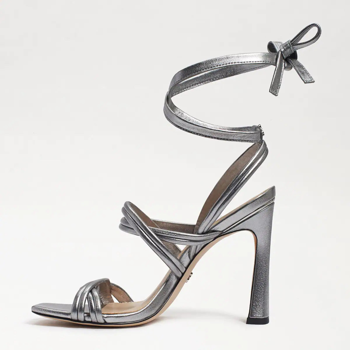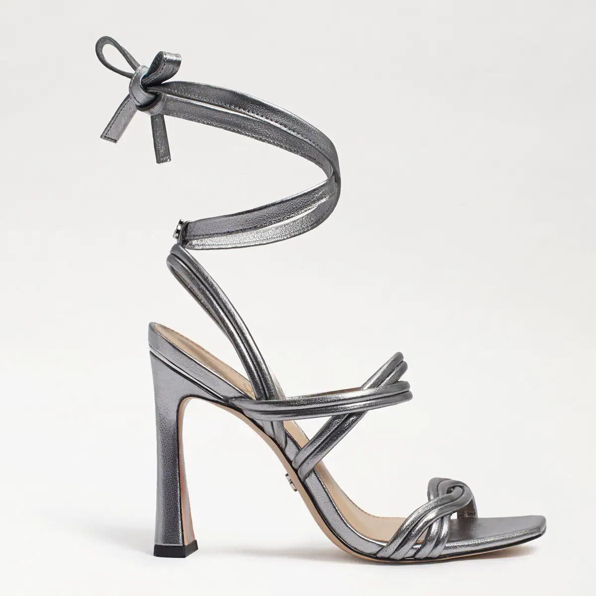 Sam Edelman Lonnie Slate Metallic Spool Heel Squared Toe Tie Up Heeled Sandals