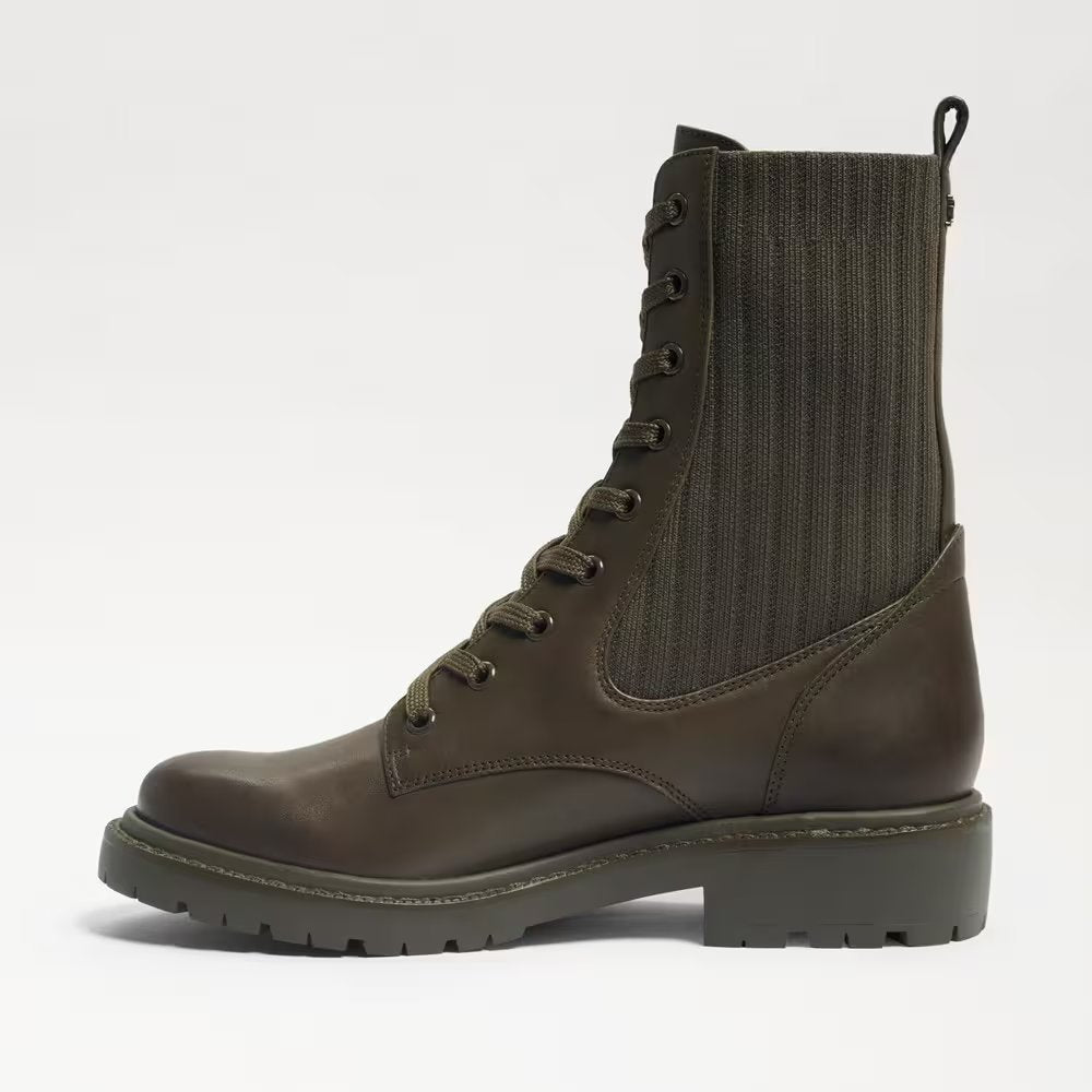 Sam Edelman Lydell Alpine Green Block Heel Round Toe Lace Up Combat Ankle Boots