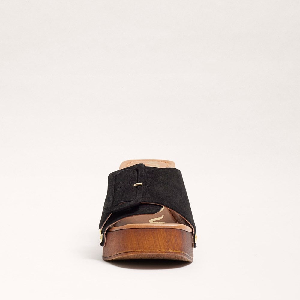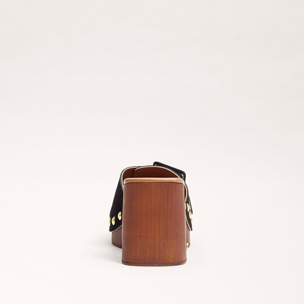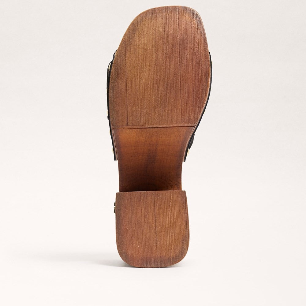 Sam Edelman Marcia Black Suede Squared Open Toe Slip On Block Heeled Sandals.