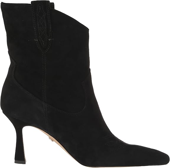 Overlay and angled top lines add a western feel to the sophisticated pull-on silhouette of the Moe pointed-toe boots.