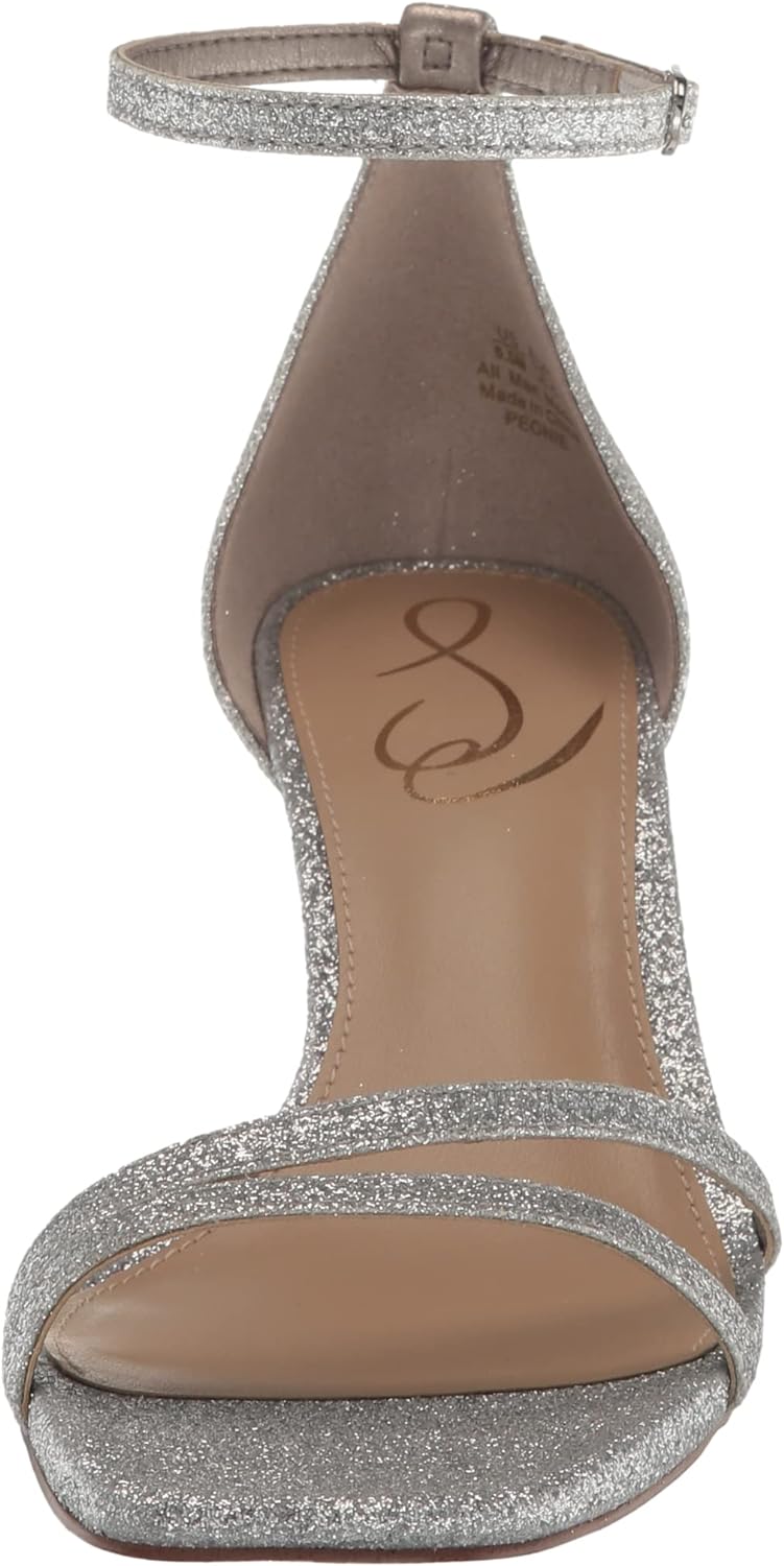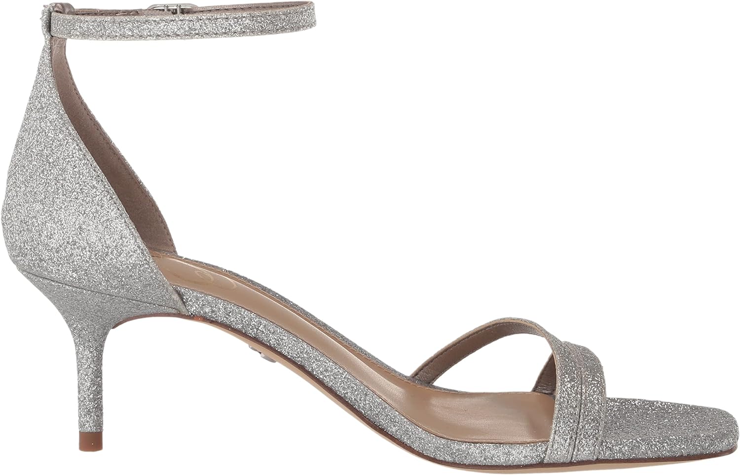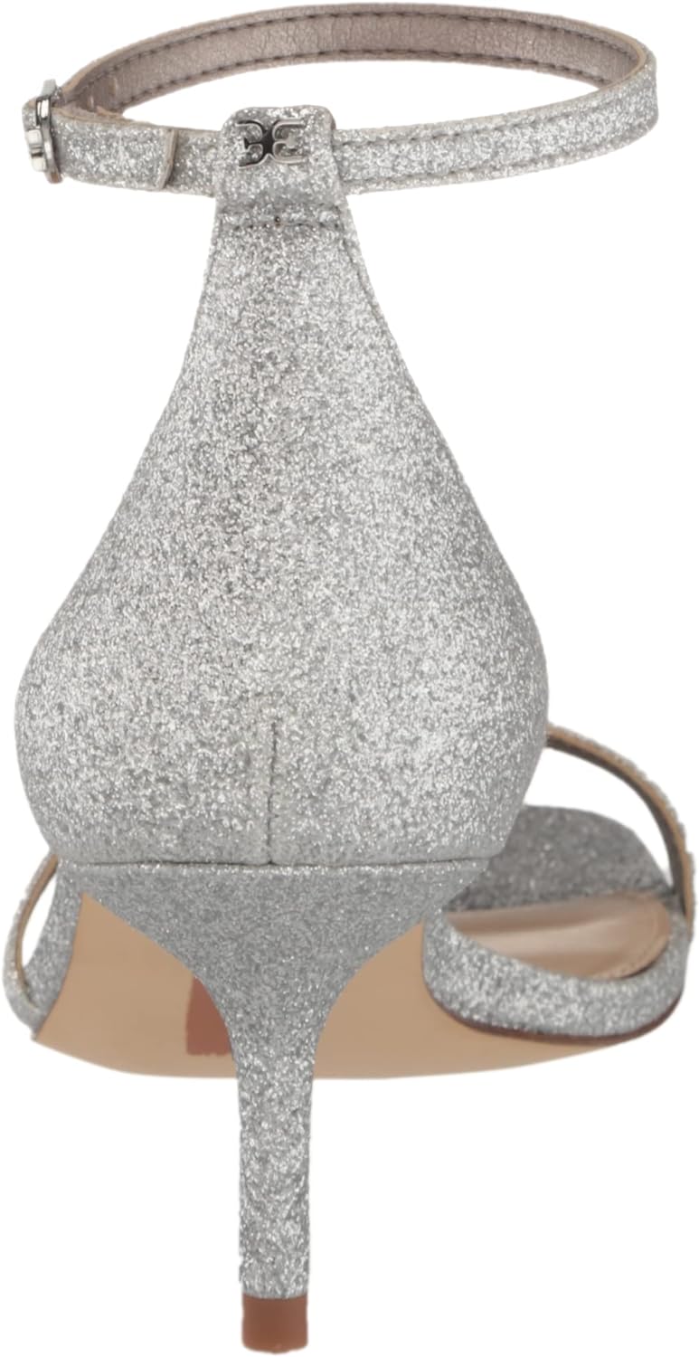 Sam Edelman Peonie Soft Silver Ankle Strap Open Toe Kitten Heeled Wide Sandals