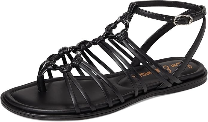 Sam Edelman Raye Black Open Toe Strappy Gladiator Ankle Strap Flat Sandals