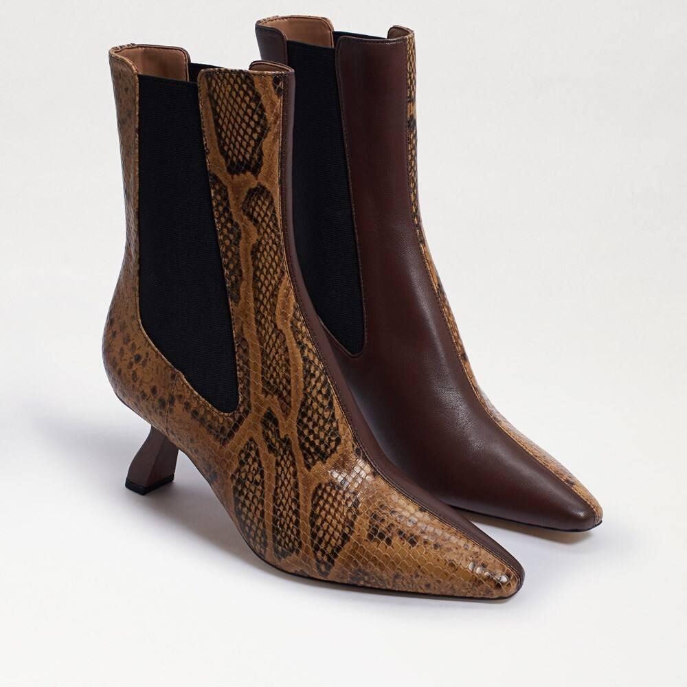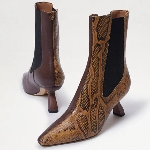 Perched on a striking kitten heel with elongated pointed toes, the Sammie booties dress up your entire wardrobe in modern elegance.