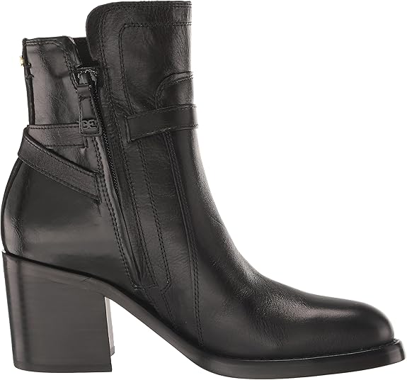 Sam Edelman Simona Black Leather Pointed Toe Block Heeled Pull On Ankle Boots