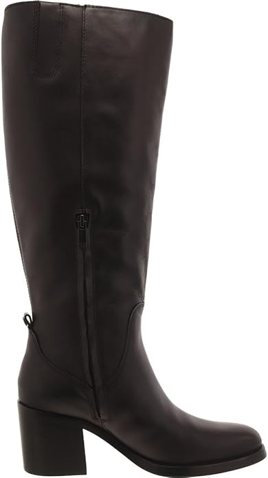 Sam Edelman Soyer Black Leather Wide Calf Block Heel Almond Toe Knee High Boots