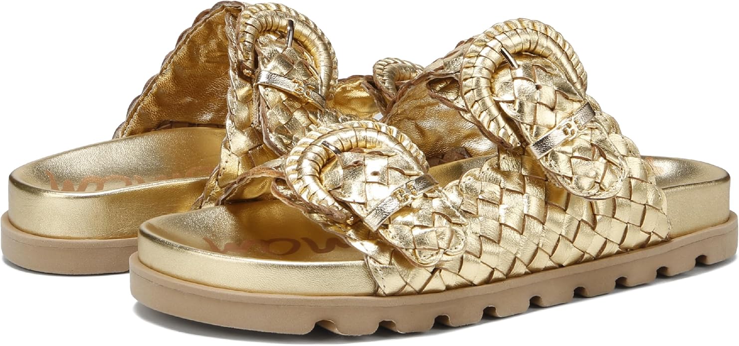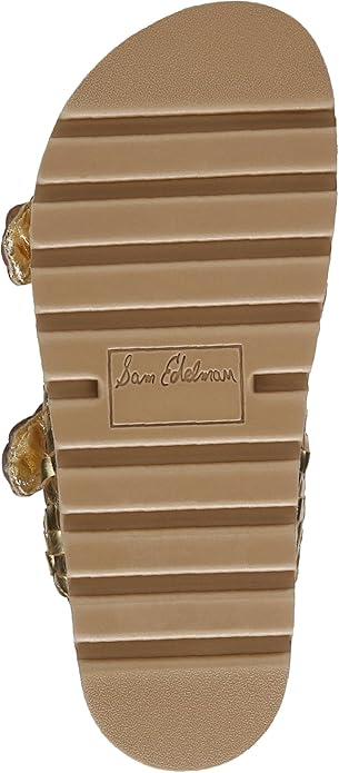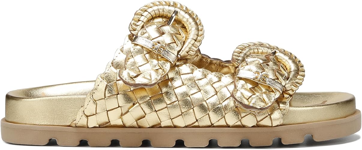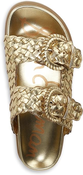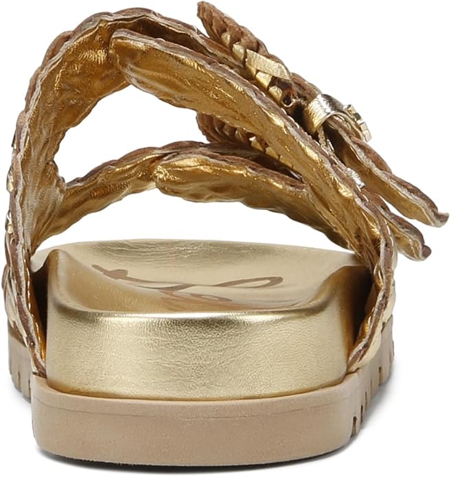 Sam Edelman Tiffanie Bright Gold Leather Buckle Open Toe Flat Slides Sandals