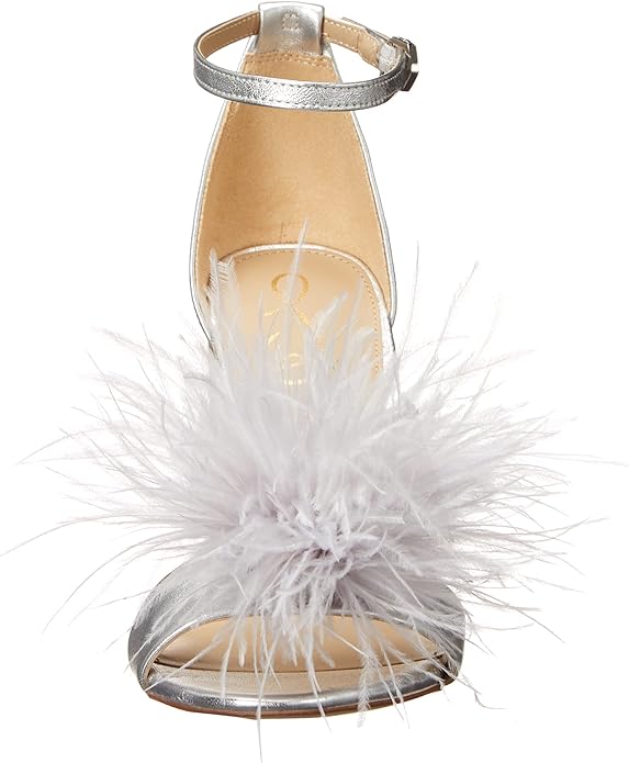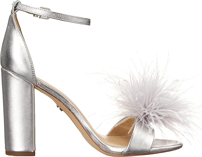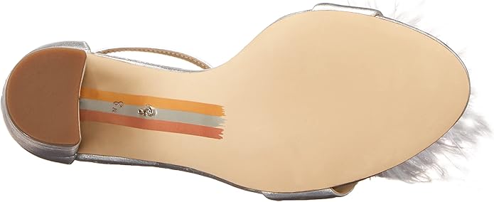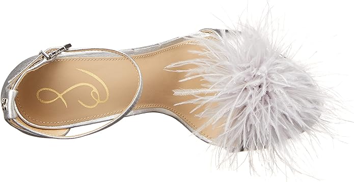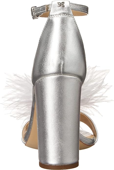 Sam Edelman Yaro Soft Silver Feather Ankle Strap Open Toe Block Heeled Sandals