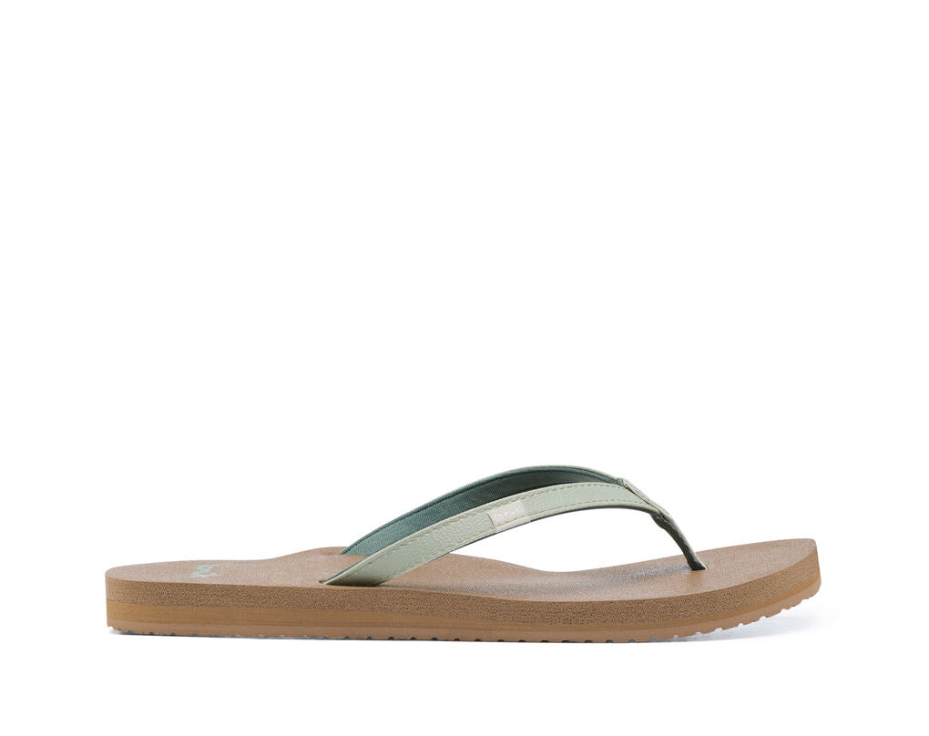 Sanuk Yoga Joy Desert Sage Slip On Rounded Open Toe Flip-Flop Summer Sandal