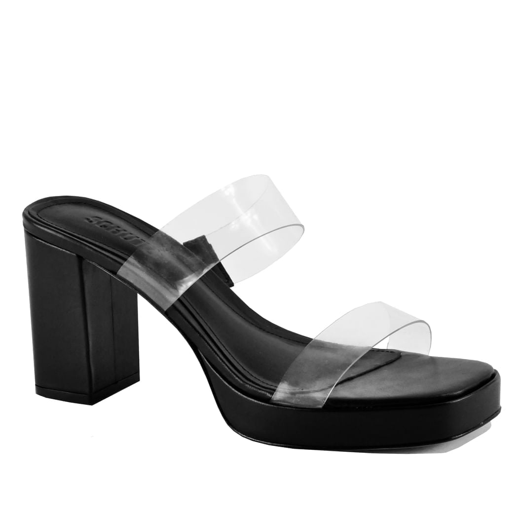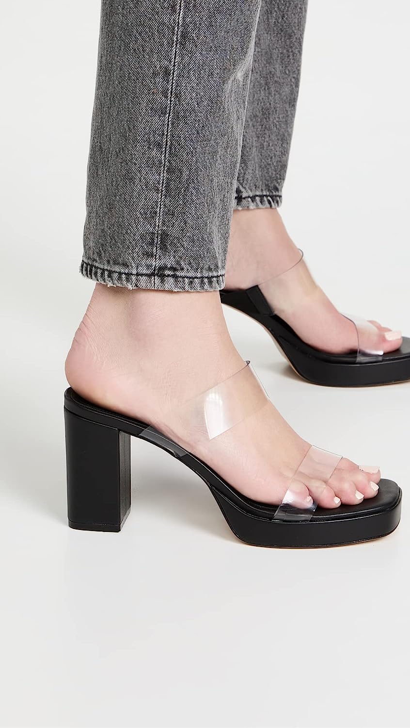 Schutz Platform Black Open Toe Translucent Straps Block High Heel Sandal