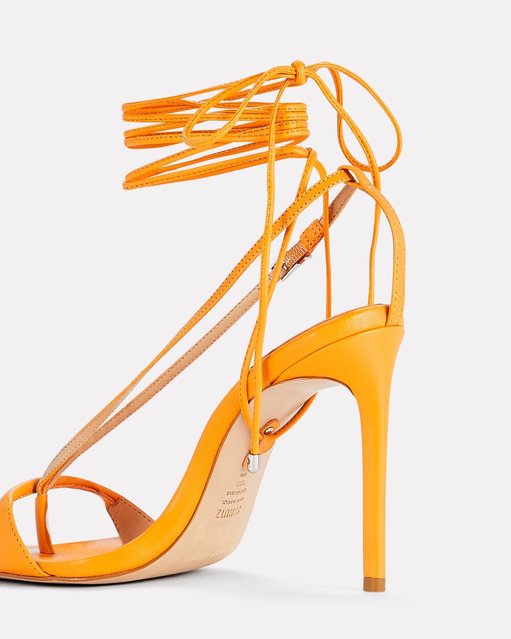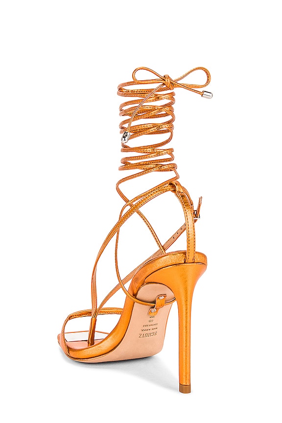 Schutz Vikki Orange Ankle Strap Lace Up Open Toe Stiletto Heeled Dress Sandals