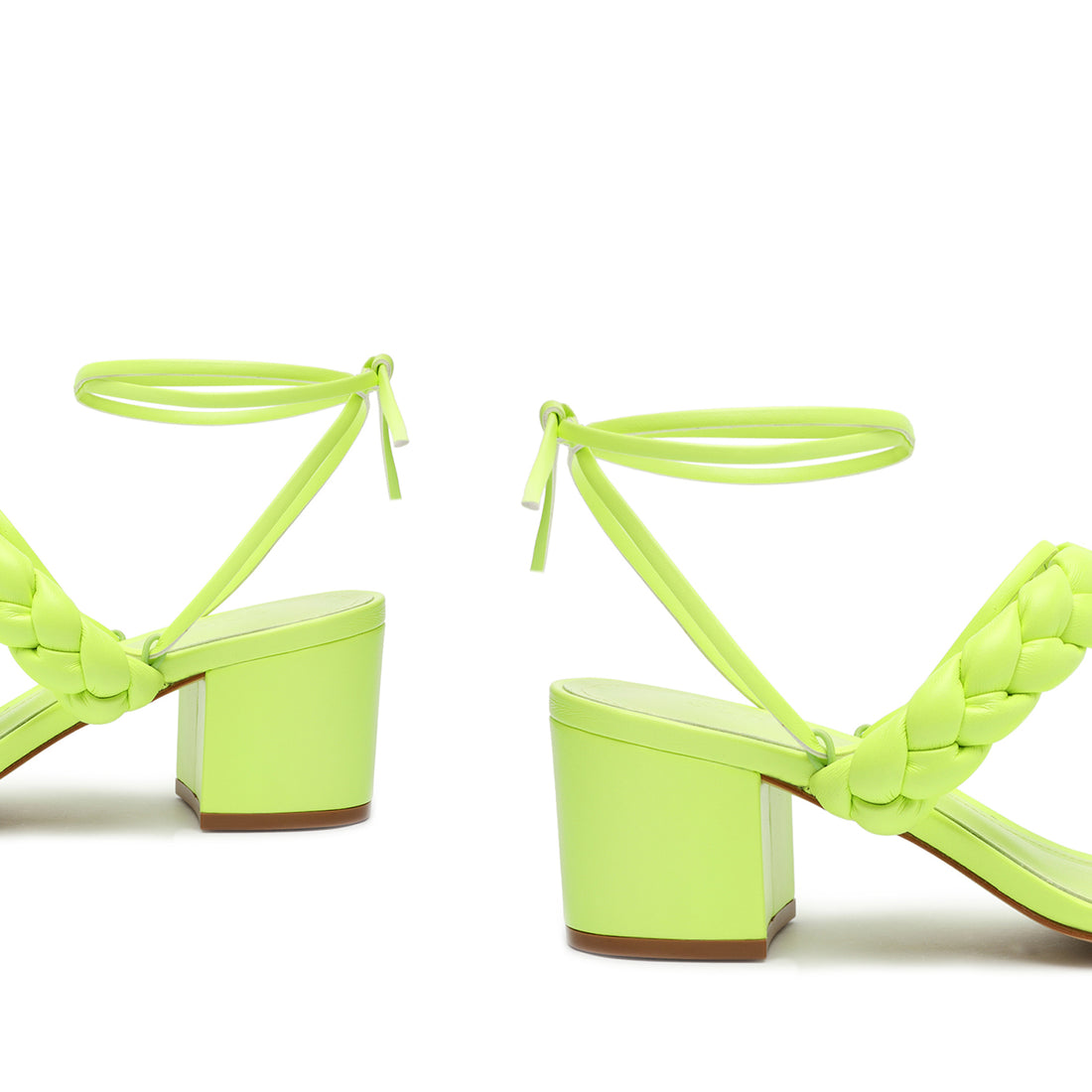 Schutz Zarda Green Fresh Braided Straps Ankle Straps Open Toe Block Heel Sandals