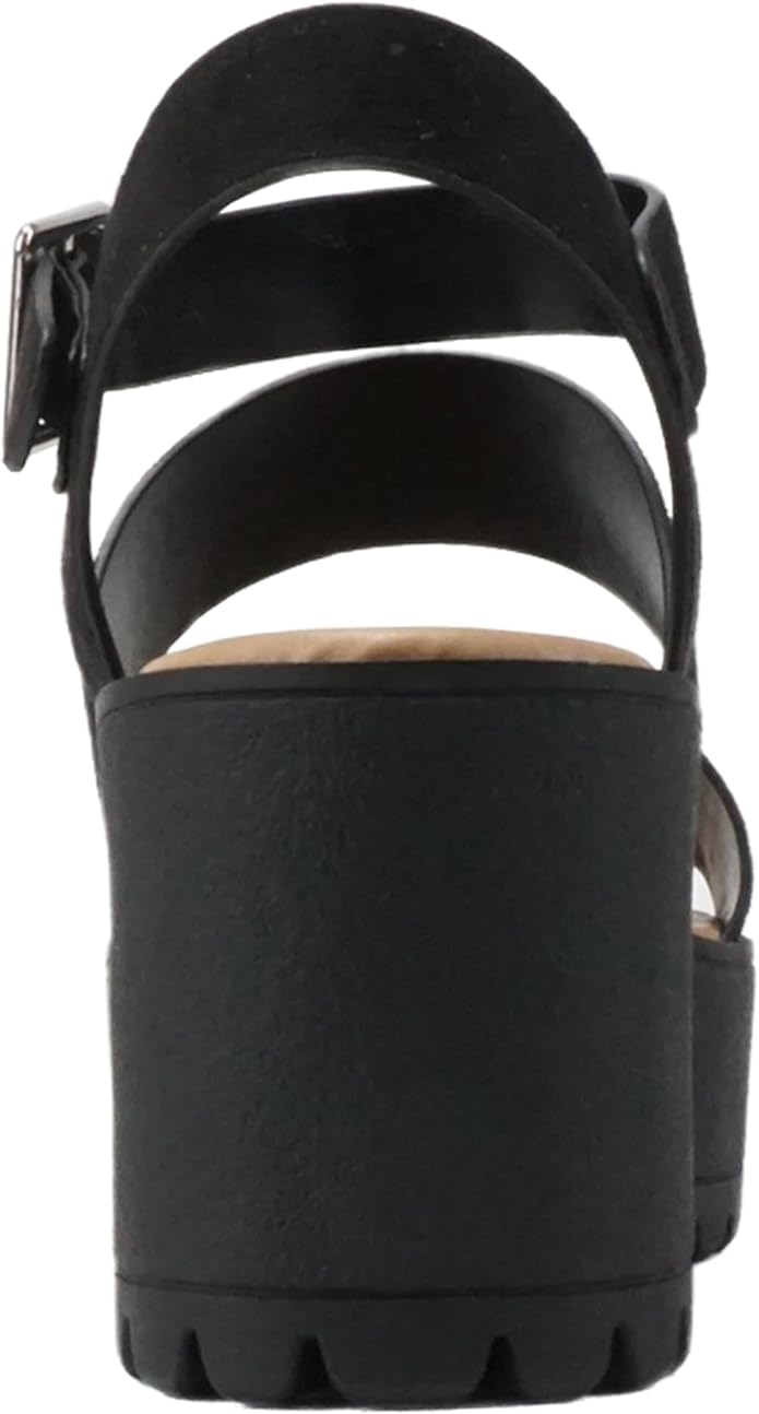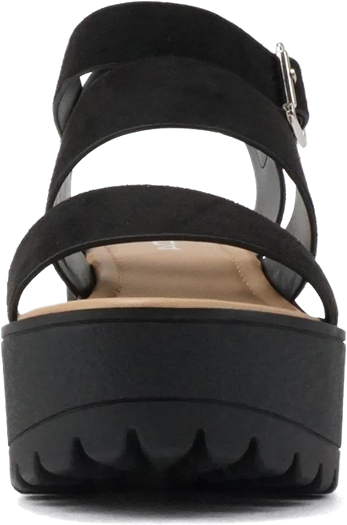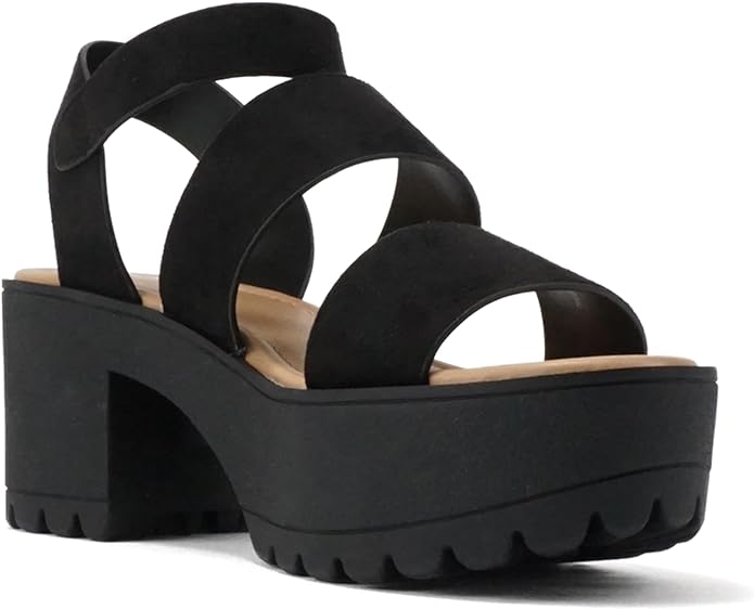 Soda Account Black Suede Ankle Strap Round Open Toe Strappy Block Heeled Sandals