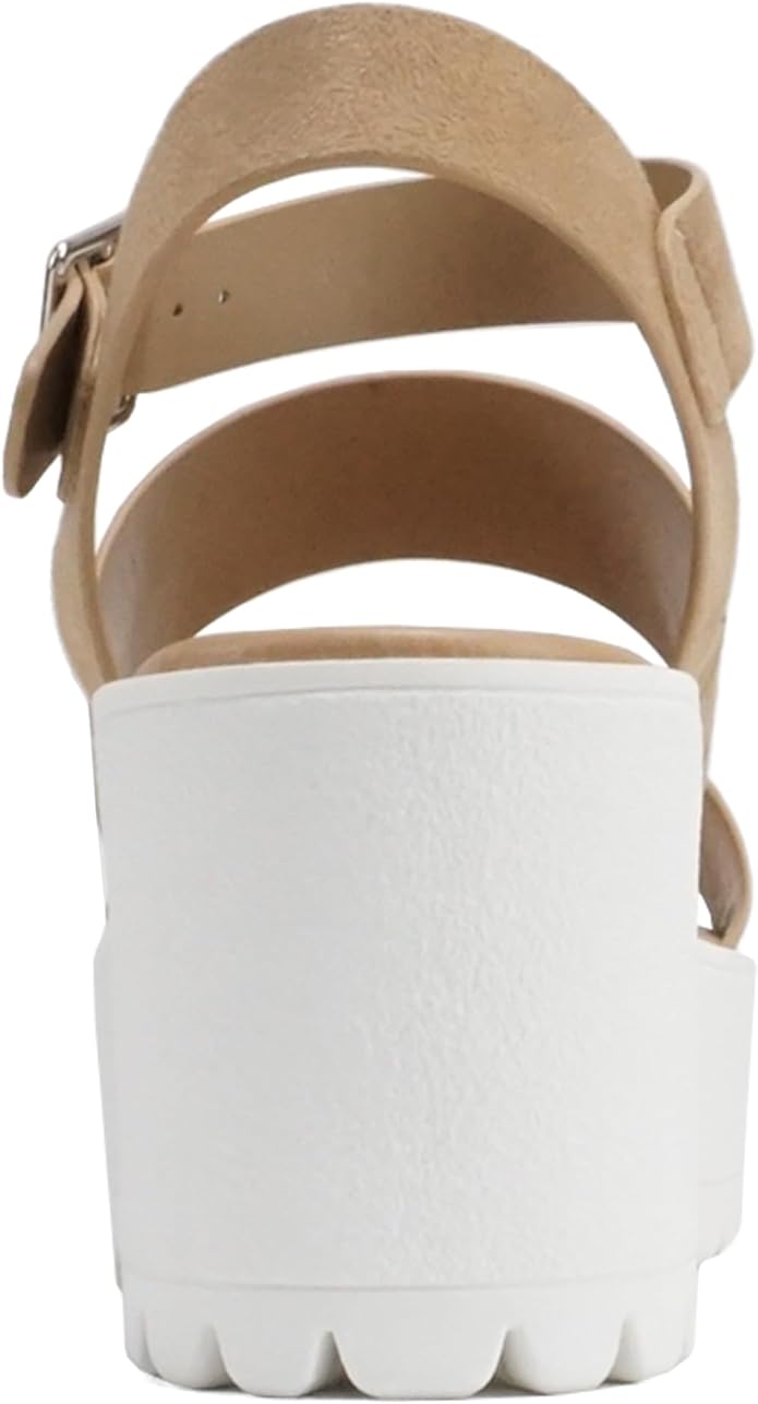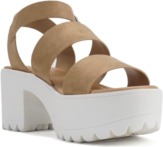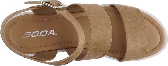 Soda Account Natural Suede Ankle Strap Round Open Toe Strappy Block Heel Sandals