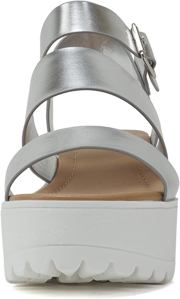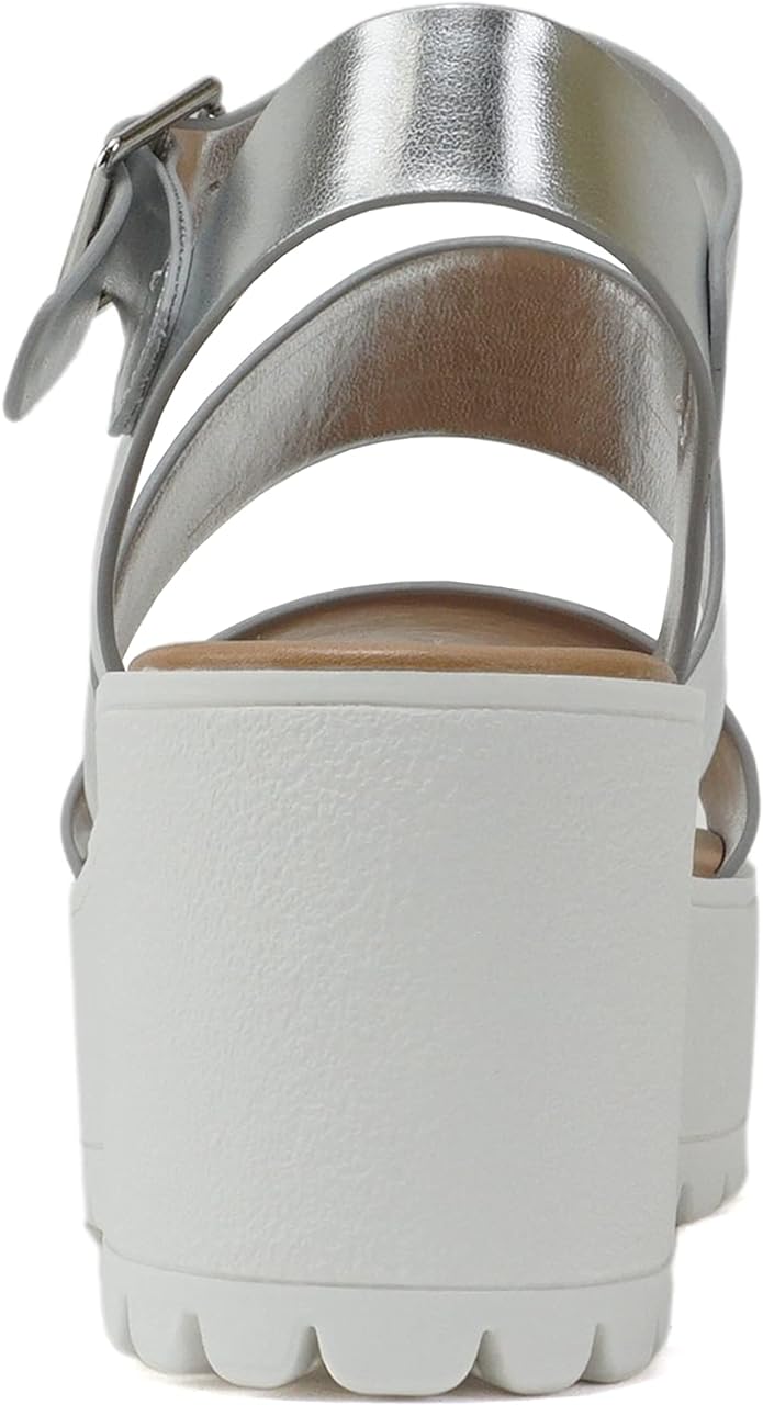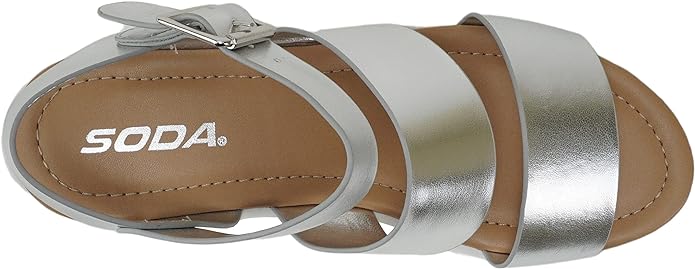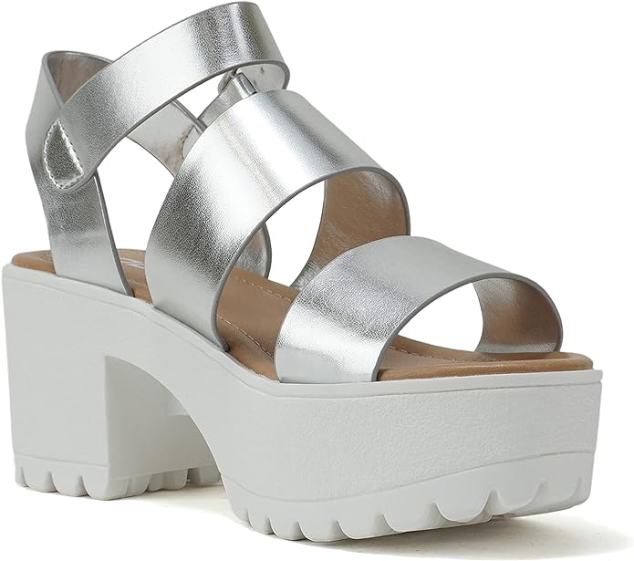 Soda Account Silver Metallic Ankle Strap Open Toe Strappy Block Heeled Sandals