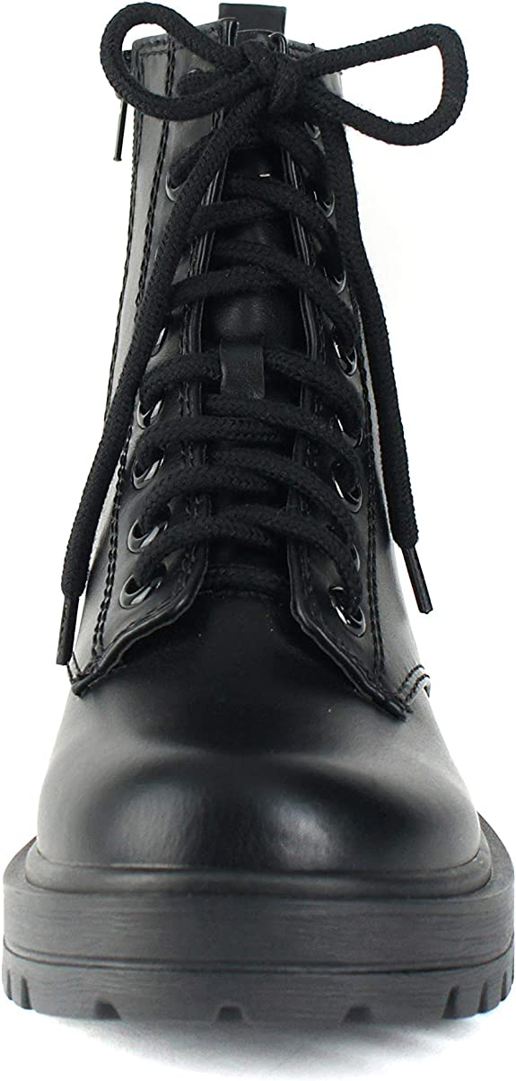 Soda Firm Black Lace Up Rounded Toe Chunky Sole Platform Combat Ankle Wide Boots