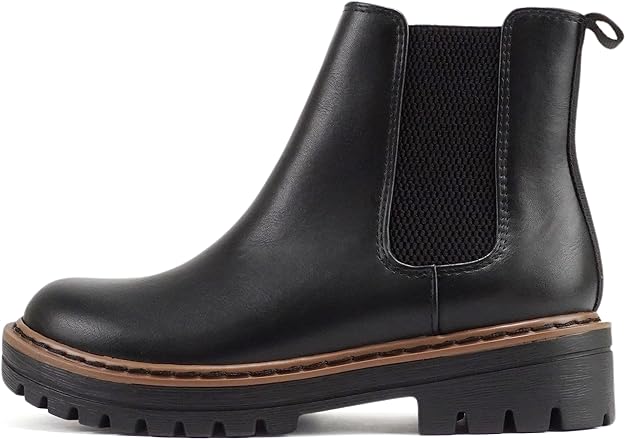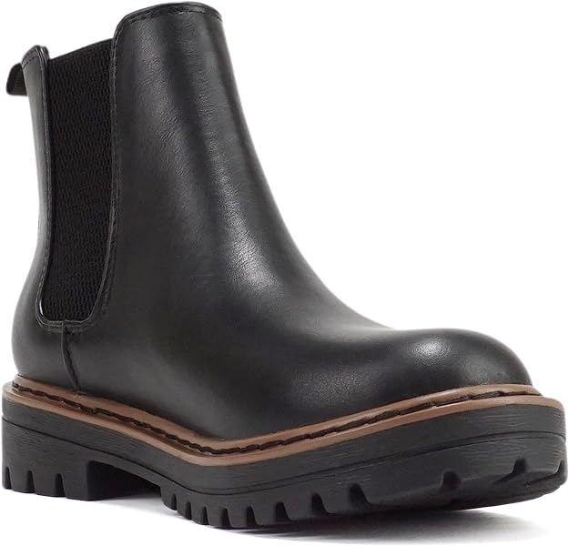 Soda Pilot Black/Tan Welt Pu Pull On Round Toe Chunky Platform Ankle Boots