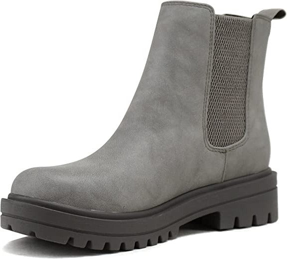 Soda Pilot Grey Nubuck Lug Sole Low Heel Chelsea Ankle Boots Double Elastic Gore