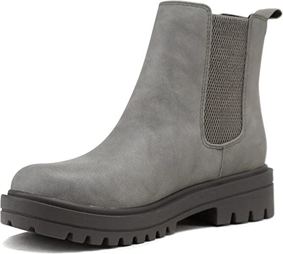 Soda Pilot Grey Nubuck Pull On Rounded Toe Chunky Platform Block Heel Wide Boots