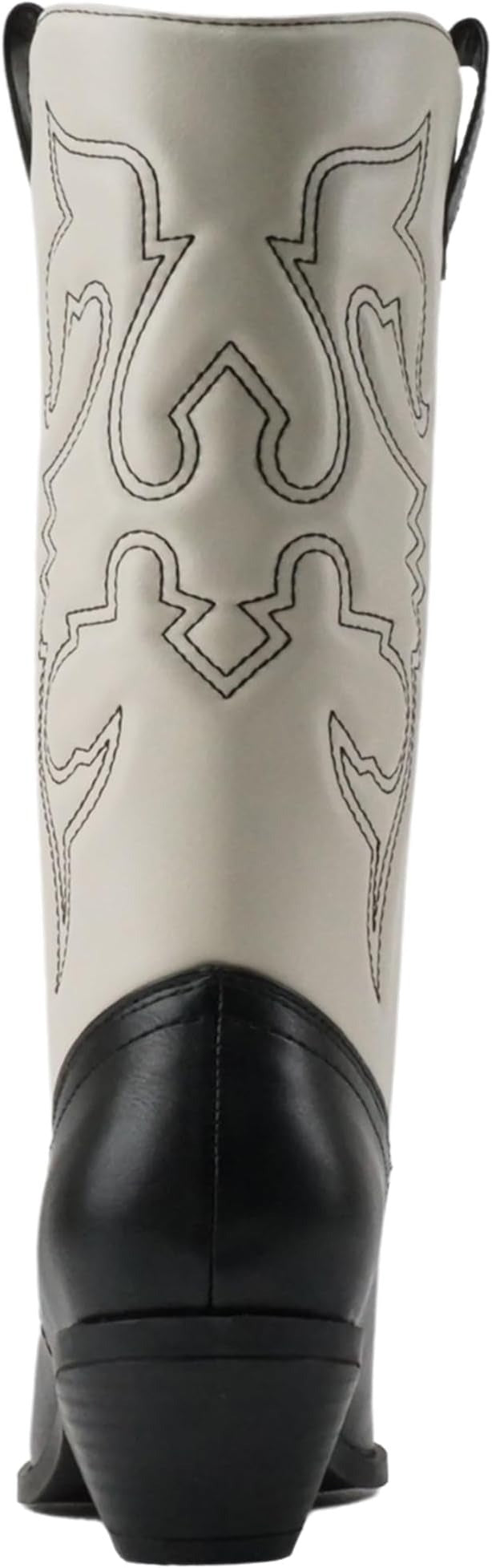 Soda Reno Black White Combo Pu Western Cowboy Pointed Toe Knee High Pull On Boot