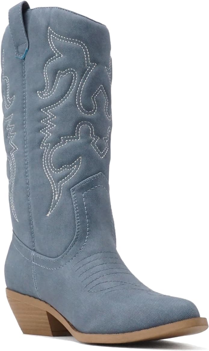 Soda Reno Blue Denim Western Cowboy Pointed Toe Knee High Pull On Western Boots