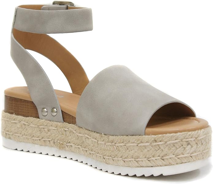 Soda Topic Dove Grey Espadrilles Ankle Strap Studded Open Toe Wedge Heel Sandals