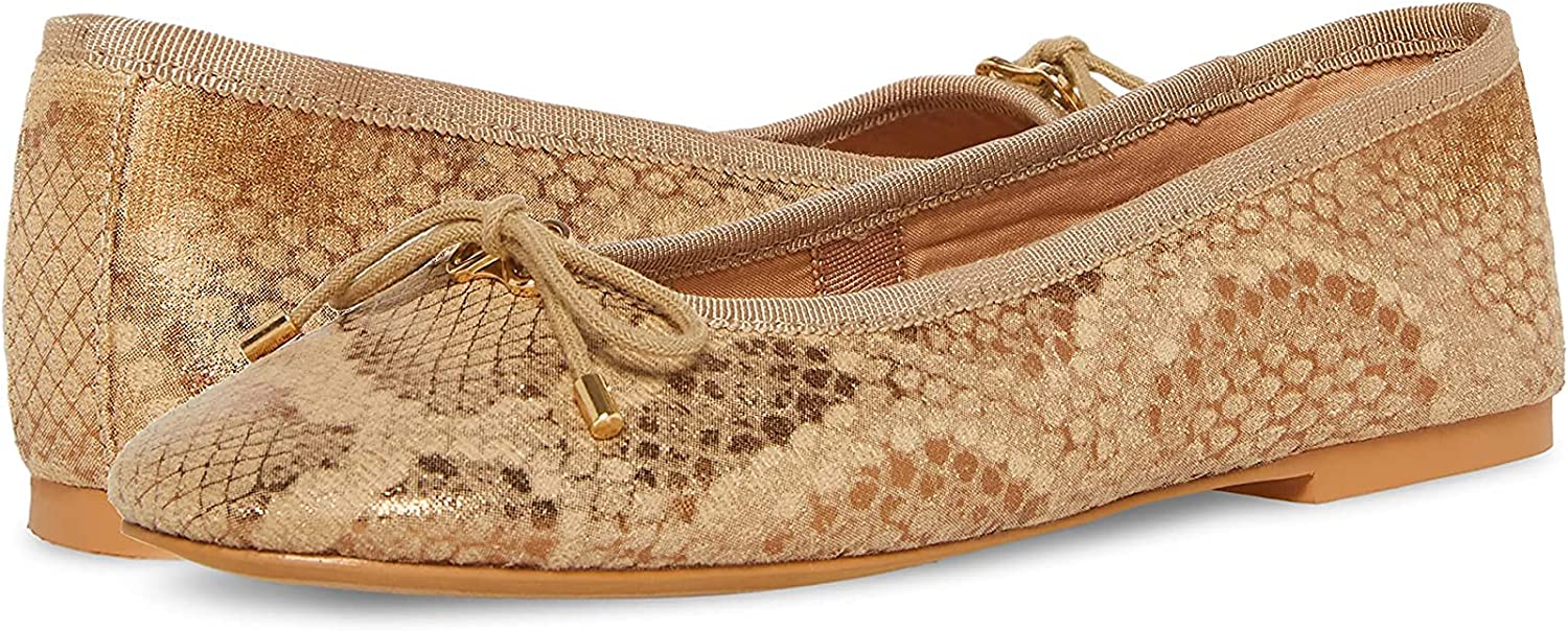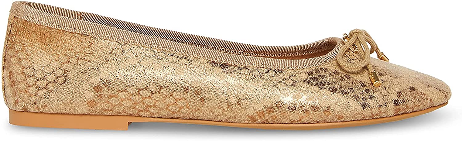 Steve Madden Blossoms Gold Snake Slip On Pointed Toe Bow Detail Ballet Flats