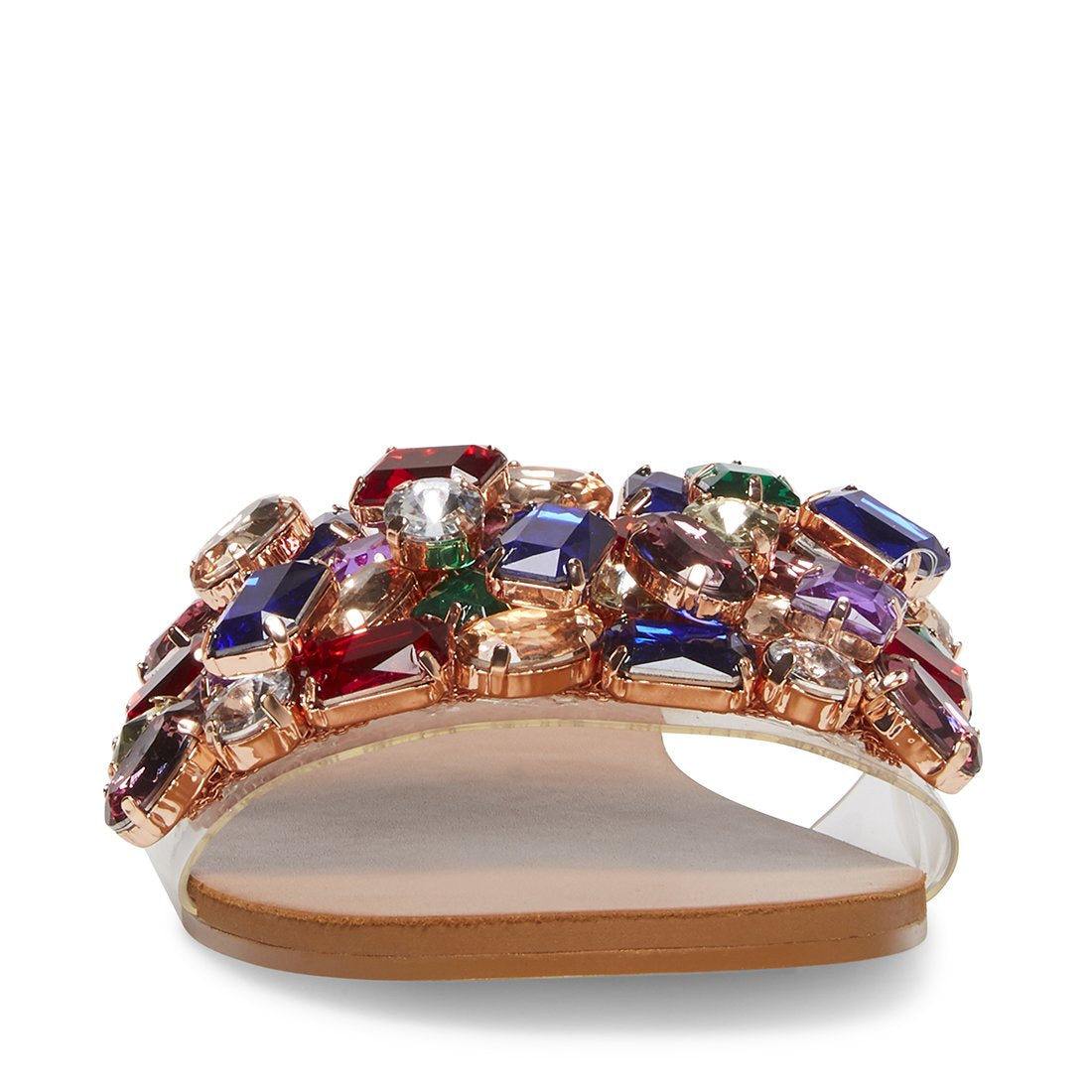 Steve Madden BRIONNA Jeweled Embellished Sandals Multi Rhinestone Flats