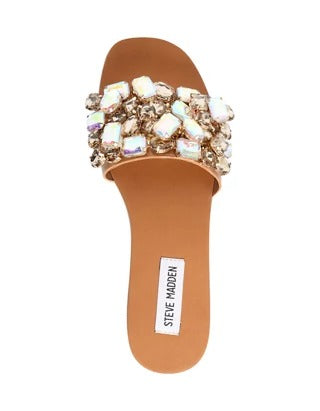 Steve Madden Brionna Jeweled Rhinestone Open Toe Flat Slide Mule Sandals