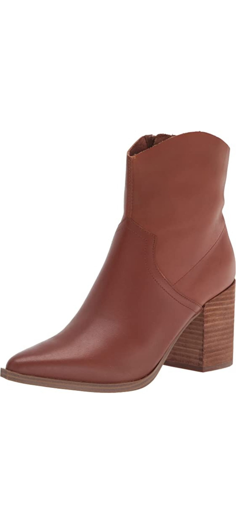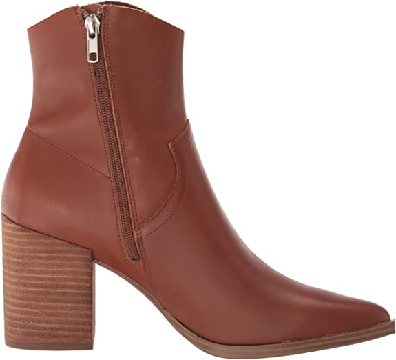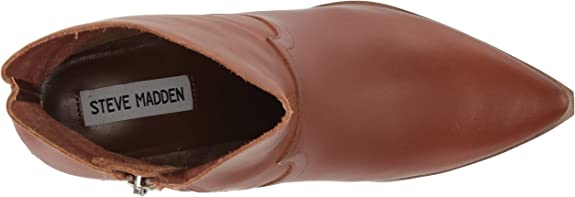 Steve Madden Cate Cognac Leather Block Heel Pointed Toe Pull On Fashion Boots