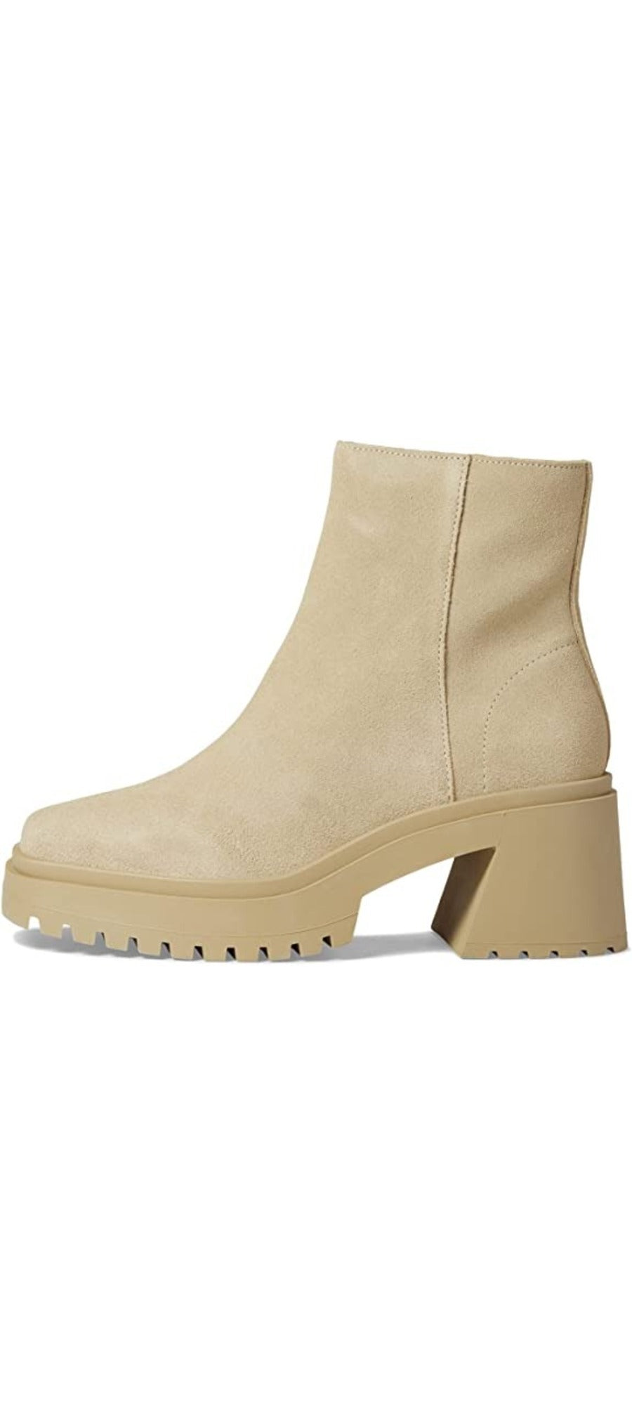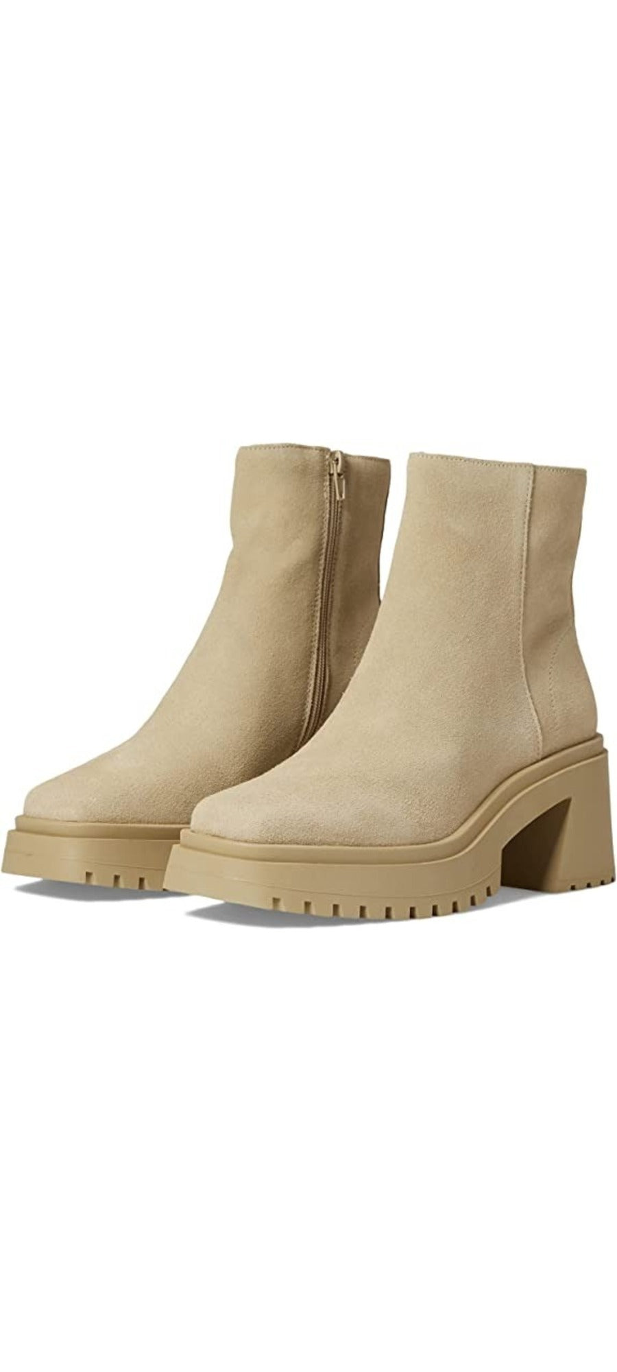 Steve Madden Fella Sand Suede Chunky Block Heel Round Toe Fashion Ankle Boots