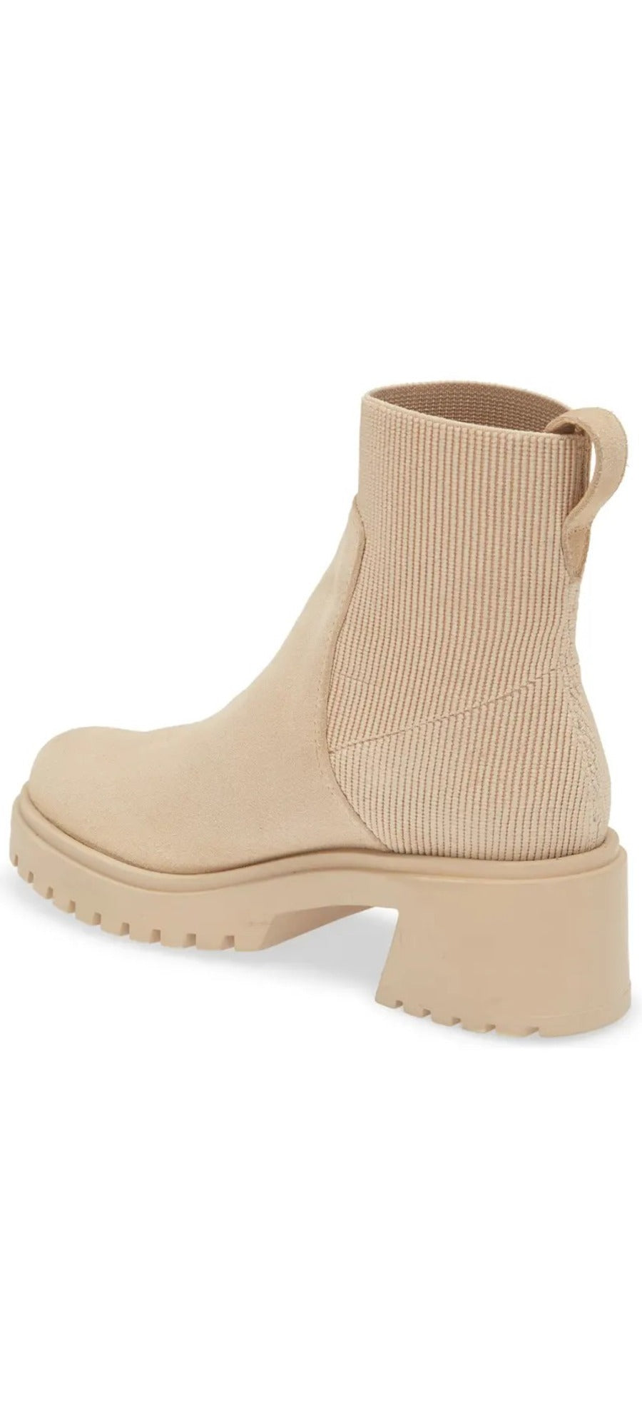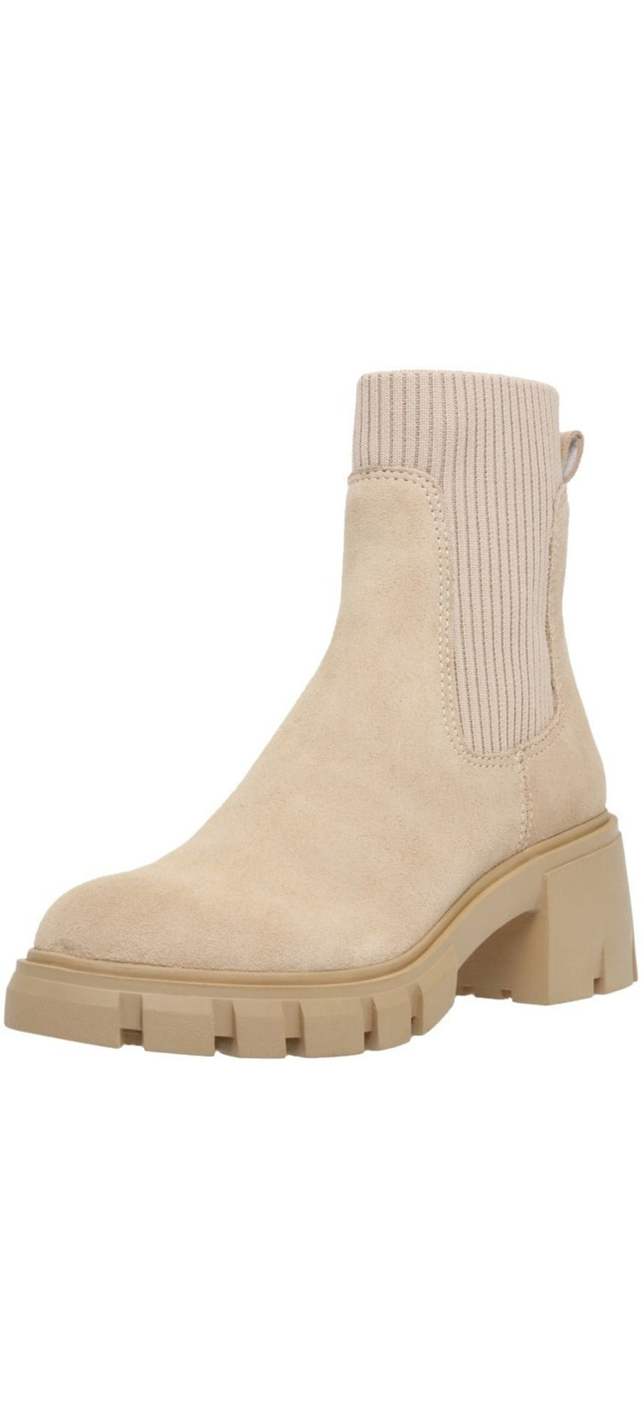 Steve Madden Holley Sand Suede Chunky Block Heel Rounded Toe Pull On Ankle Boots