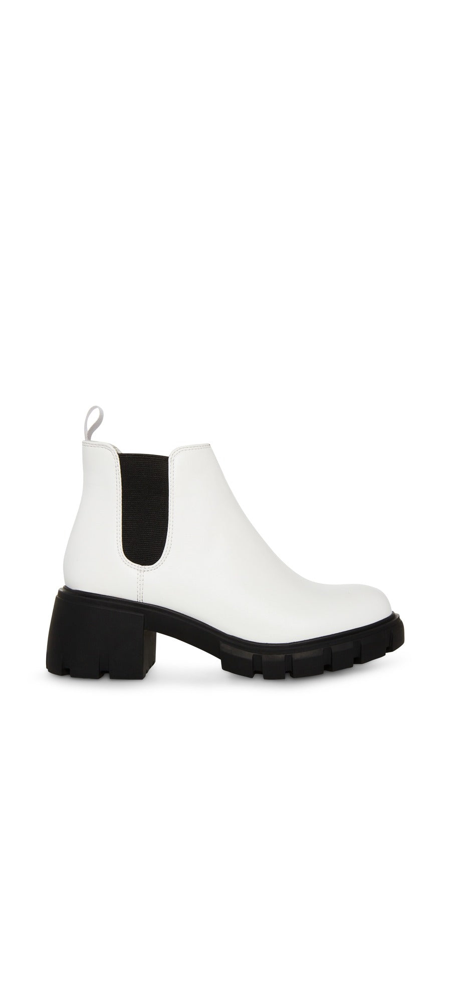 Channel some major edgy vibes with the Howler Black Leather Platform Ankle Boots! Smooth genuine leather shapes these trendy boots that have a 1" toe platform, rounded toe upper, and ankle-high shaft with elastic gussets and pull tab at back. Chunky block heel makes these boots perfect for all day! Available in whole sizes only.